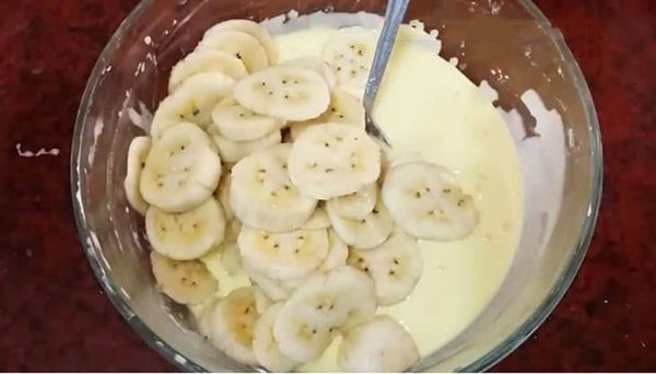 - Khi trộn hỗn hợp bột vào chuối ngâm cần nhẹ tay để chuối không bị dập nát.