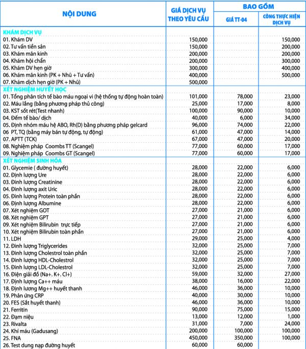 - Thụ tinh ống nghiệm kỹ thuật IVF (chưa bao gồm môi trường nuôi cấy): 5.000.000 đồng.